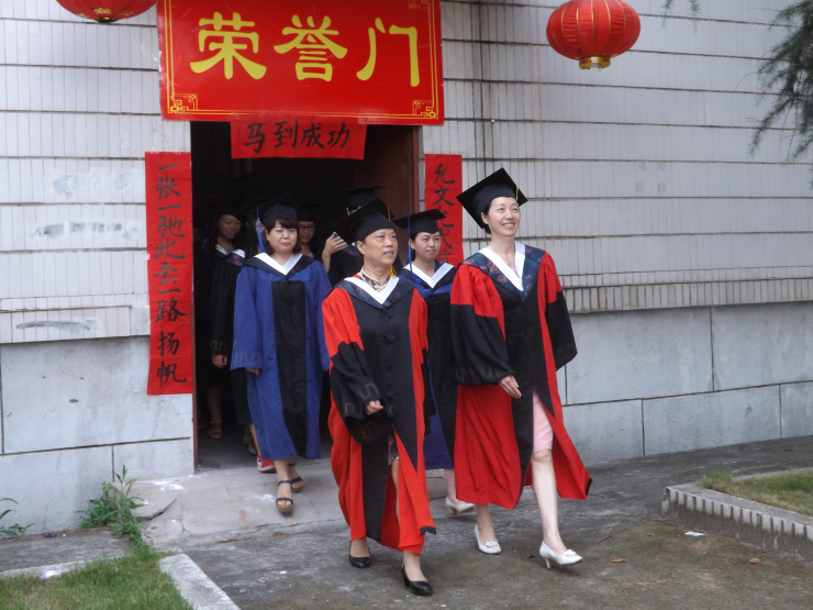 在段功香及吴艳平两位教授、硕士生导师的带领下,106位毕业生缓缓通过“荣誉门”、走过“护理人之路”,到达典礼现场。