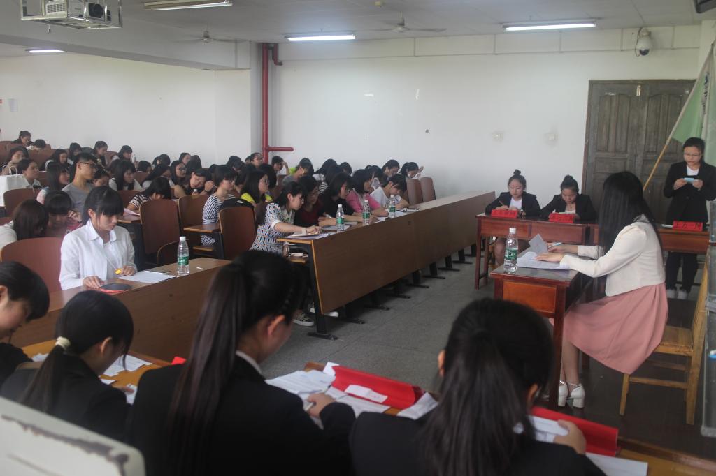 4月18日下午,英国上市公司365护理学院第七届辩论赛复赛于红湘校区一教212激烈展开。护理学院学工办伍春携院学生会主席蔡维、院团委副书记张鑫等主席团成员组成评审团对辩论赛进行指导点评。院学生会副主席张靓担任辩论赛主席。