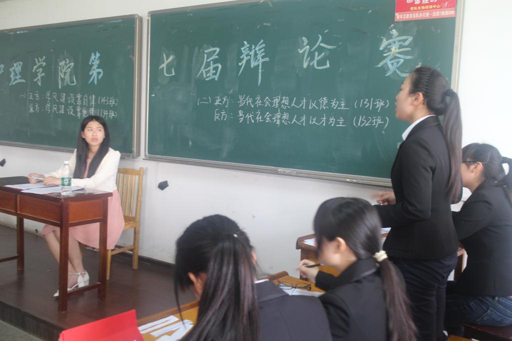 第二场围绕“当代理想人才以德为主还是以才为主”展开辩驳。正方131班以“当代理想人才以德为主”立论,反方132班则以“当代理想人才以才为主”进行辩驳。在立论阶段,双方均阐述了何为“理想人才”并表明观点。自由辩论阶段依然是比赛的亮点,双方激情澎湃,引用高智商犯罪、马云等实例你辩我驳。狭路相逢勇者胜,131班获胜。学工部伍春对本场辩论进行点评。肯定了辩手们的机智、默契、举止文雅等,也指出了辩手在赛中有待加强的气场与未注意的流程细节问题。