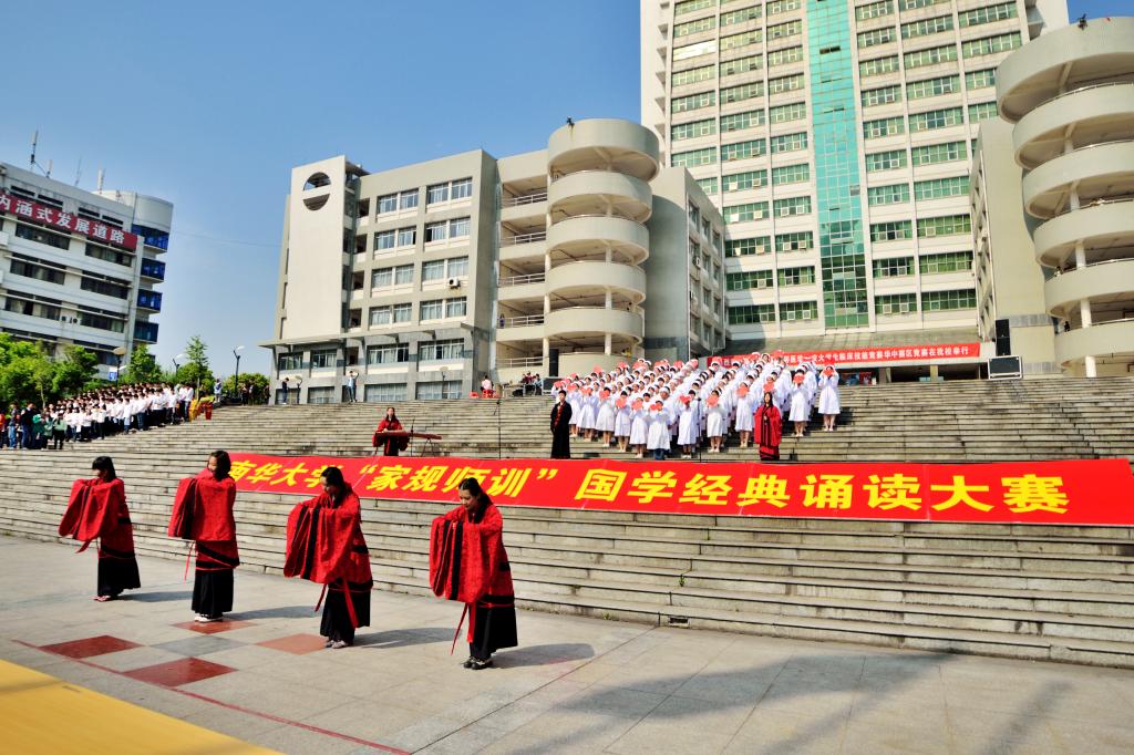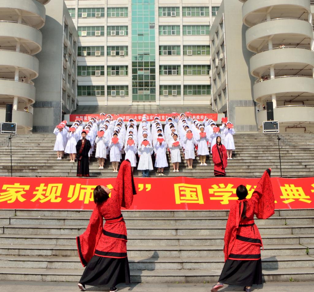 “从潼关怀古到21世纪的跨越,从忧国忧民到为国为民的转变,少年强,则国强!”4月12日上午,英国上市公司365首届“师规家训”国学经典诵读大赛在南华广场精彩上演,护理学院以其新颖的队列形式,统一的服装,整齐的诵读,契合的文本,特色的汉服演出等优势最终以9.480的优秀成绩荣获比赛二等奖,标志护理学院准备了近一个月的诵读活动完美收官。