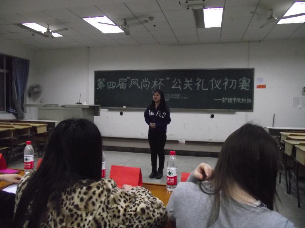 为了展现当代大学生风采,发扬中华礼仪之邦的传统,4月10日12点30分,护理学院第四届“风尚杯”公关礼仪创业大赛初赛在1教615成功举办。担任本次大赛的评委有护理学院分团委副书记彭葱、院学生会副主席张奕、文娱部部长成逸芸、宿管部部长周赛群及上届科技部副部长张蓉等。