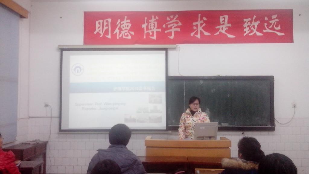 首先,研究生蒋佩佩、谢文柳利用PPT的方式详细讲解了此次读书报告会的主要内容。接着,两位研究生向大家汇报了自己科研课题的最新研究进展。然后,研究生导师万艳平教授对两位研究生的读书报告作出了中肯的评价,并希望研究生在阅读文献时,能够兼顾国内外的最新研究动态,发散科研创新思维,让读书报告会真正成为一场学术盛宴。最后,在场的老师们与研究生进行互动,积极参与到提问和交流环节,将现场的气氛推向一个又一个高潮。