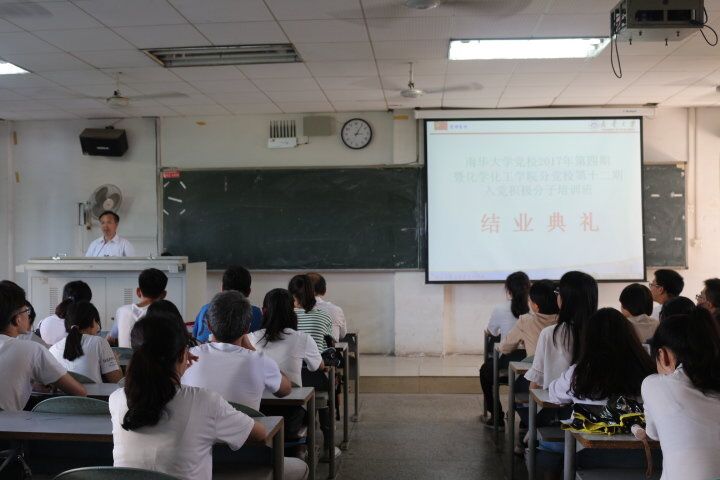 化工学院第十二期入党积极分子培训已经展开了近一个月,5月13日下午,化工学院于本部九教402教室举行了培训班结业典礼。化学化工学院党委书记聂长明及党委副书记彭建南,学工室雷秀岚莅临结业典礼,祝贺本届入党积极分子顺利结业。