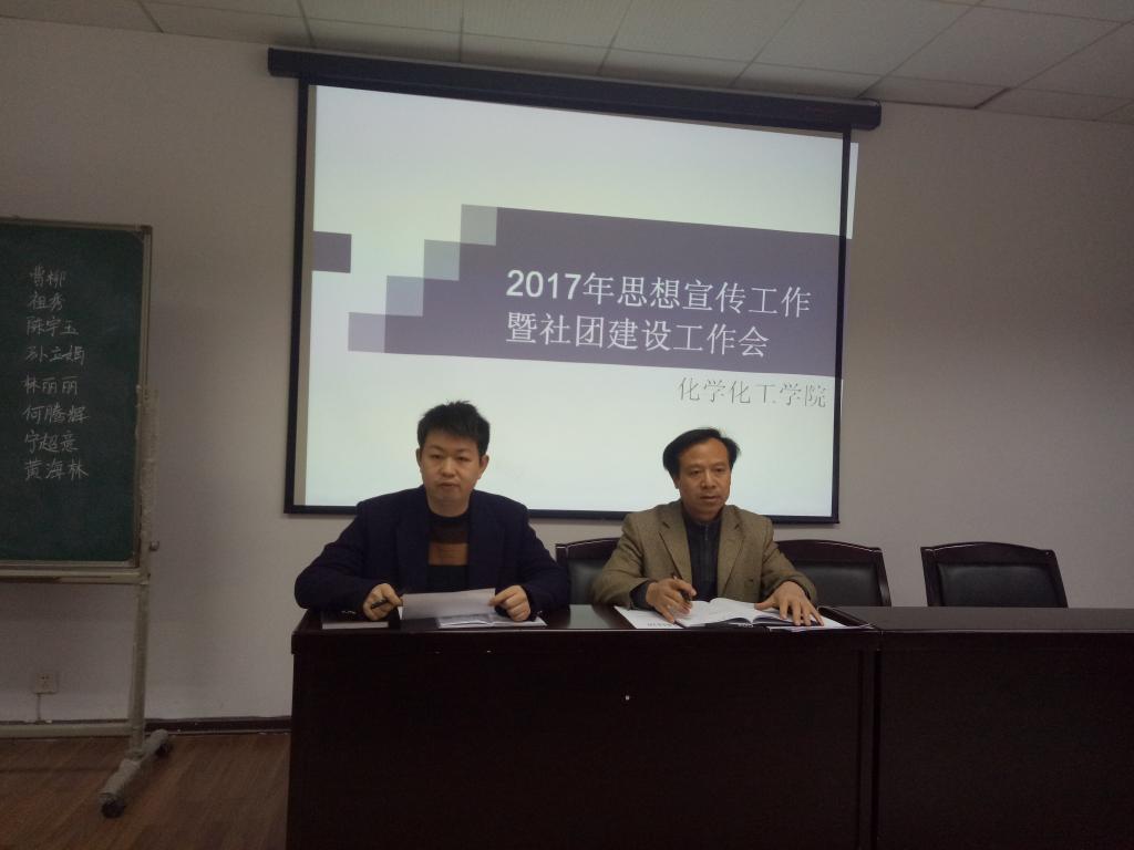 3月3日,化学化工学院2017年思想宣传暨社团建设工作会于第九教学楼411会议室召开,出席本次会议的有院党委副书记彭建南,院团委书记李睿,有关宣传工作的部门部长及各社团会长。