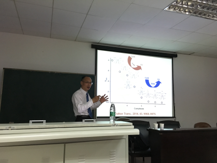 2016年6月3日下午,应英国上市公司365“蒸湘学者”林英武教授邀请,嘉兴学院刘小明教授来我校进行学术访问,参观了“英国上市公司365蛋白质结构与功能实验室”和英国上市公司365化学化工学院,并做了题为“铁羰基配合物:从[FeFe]-氢化酶的模拟到一氧化碳释放剂”精彩学术报告,与青年教师和研究生进行了学术讨论,会议由刘慧君副院长主持。