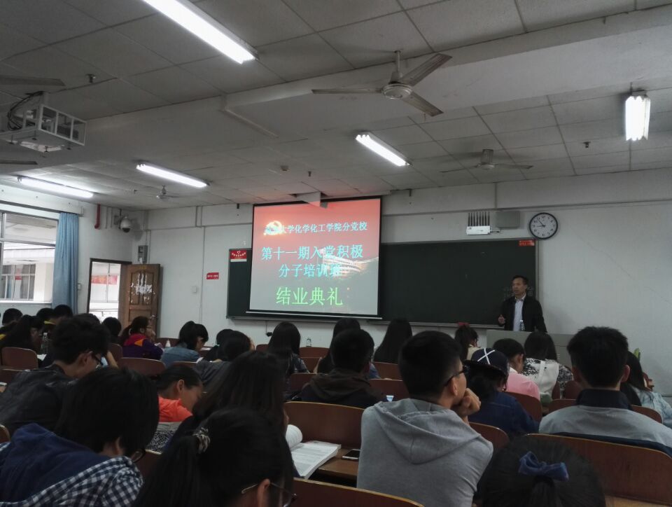 5月21日上午9点,化学化工学院第十一期入党积极分子培训班结业典礼在一教216教室举行。化学化工学院党委书记聂长明、党委副书记彭剑南出席了本次典礼。
