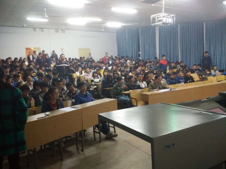 2016年3月19日晚,化学化工学院于雨母校区二教104室召开了2015级年级大会。出席本会议的领导有党委副书记彭建南、院团委书记蒋剑红,化工学院2015级全体学生参加了本次大会。本次大会旨在汇报并总结上学期各方面的工作开展情况,同时对新学期提出新要求,初步安排新学期的年级工作,力求反思与创新并行。
