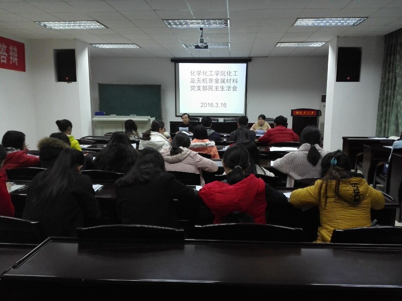 为进一步营造积极向上、干事创业、风清气正的政治作风。3月16日,化学化工学院于9-411室召开“三严三实”专题组织生活会和民主评议党员工作。其中,院党委副书记彭建南、化工与无机党支部书记蒋剑红作为特邀嘉宾出席了此次会议。此外,化工与无机党支部全体党员也来到了会议现场。