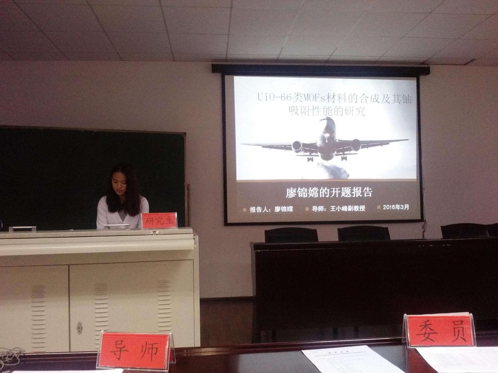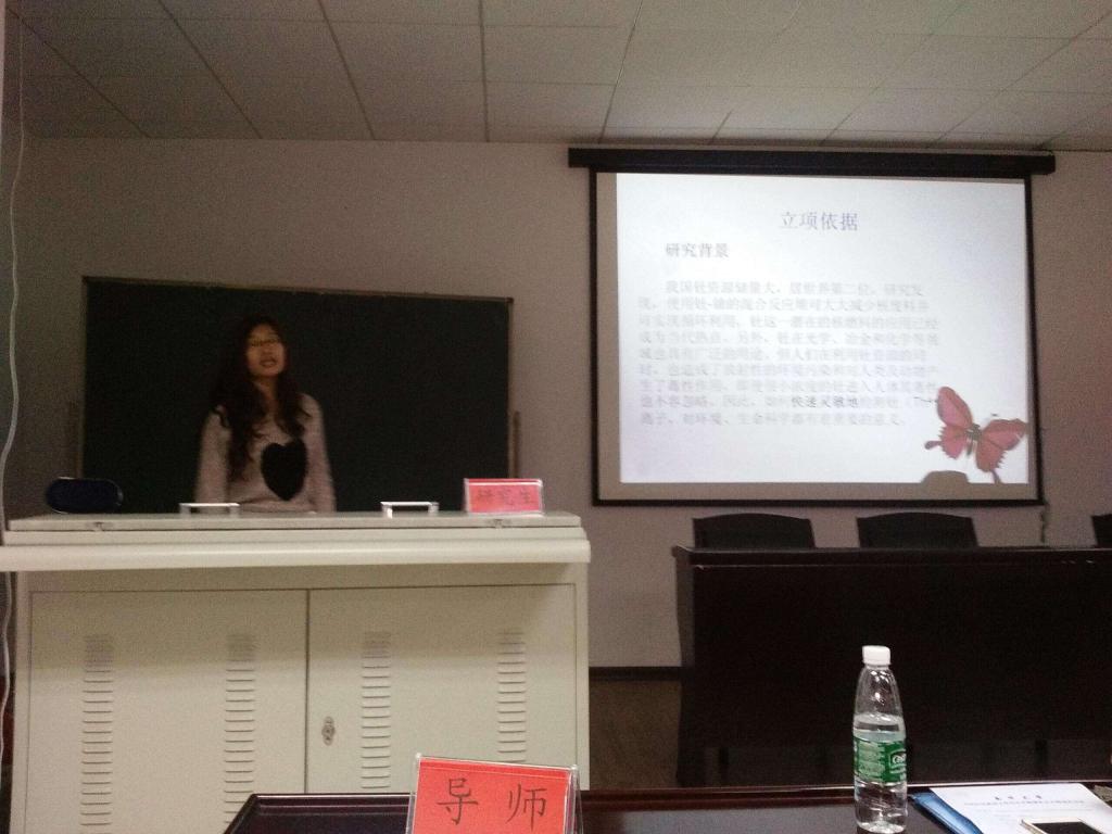 3月5日,化学化工学院在9-411学术报告厅举行2014级硕士研究生学位论文开题报告会。开题报告会按化学、应用化学、化学工程和制药工程等分专业进行,我院硕士研究生导师、专家和2015级研究生参加会议,会议由副院长刘慧君主持。