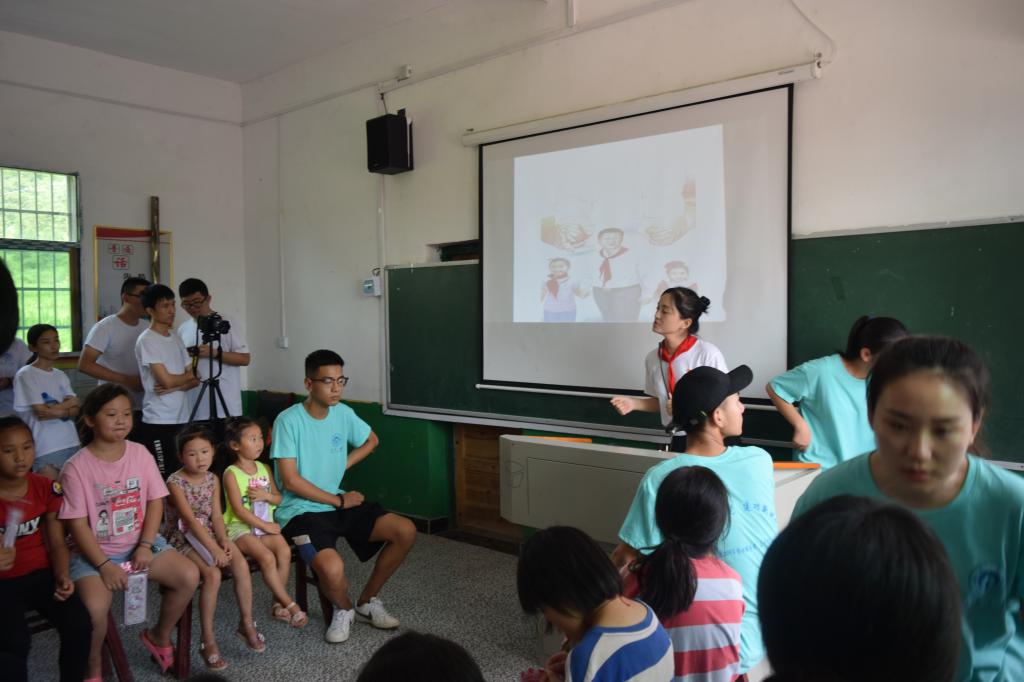 8月18日上午,在经过准备工作后。团队成员蒋莎为小朋友们带来了一堂生动的弘扬爱国主义小课堂。为当地的孩子们讲解国旗、国歌等知识。并强调了爱国要从身边的小事做起,要注重讲究卫生、礼仪礼貌等问题。