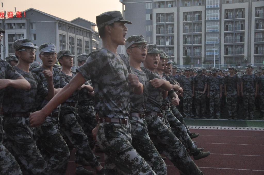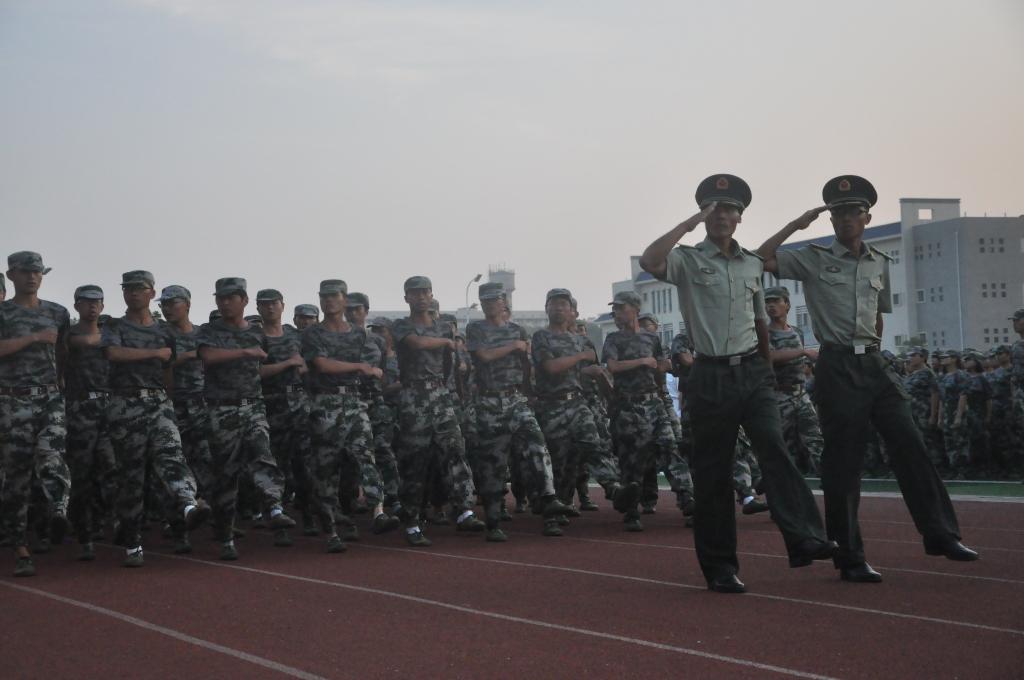“跨立,稍息,立正,齐步走......”,一系列精准的动作一气呵成,处处体现出他们训练有素的干练作风;响彻长空的口号,表达着新生们青春的活力与激情。历时14天的军训,新生们无畏无惧地接受着风雨阳光的洗礼,烈日焦灼的是他们的的皮肤,可却历练出他们钢铁般的意志。阳光下,风雨中,教官们和学生共同浇开了成功之花。虽然他们都瘦了,黑了,但是军训让他们更加坚强,更加成熟,更懂得责任感,更懂得团队的力量无穷。