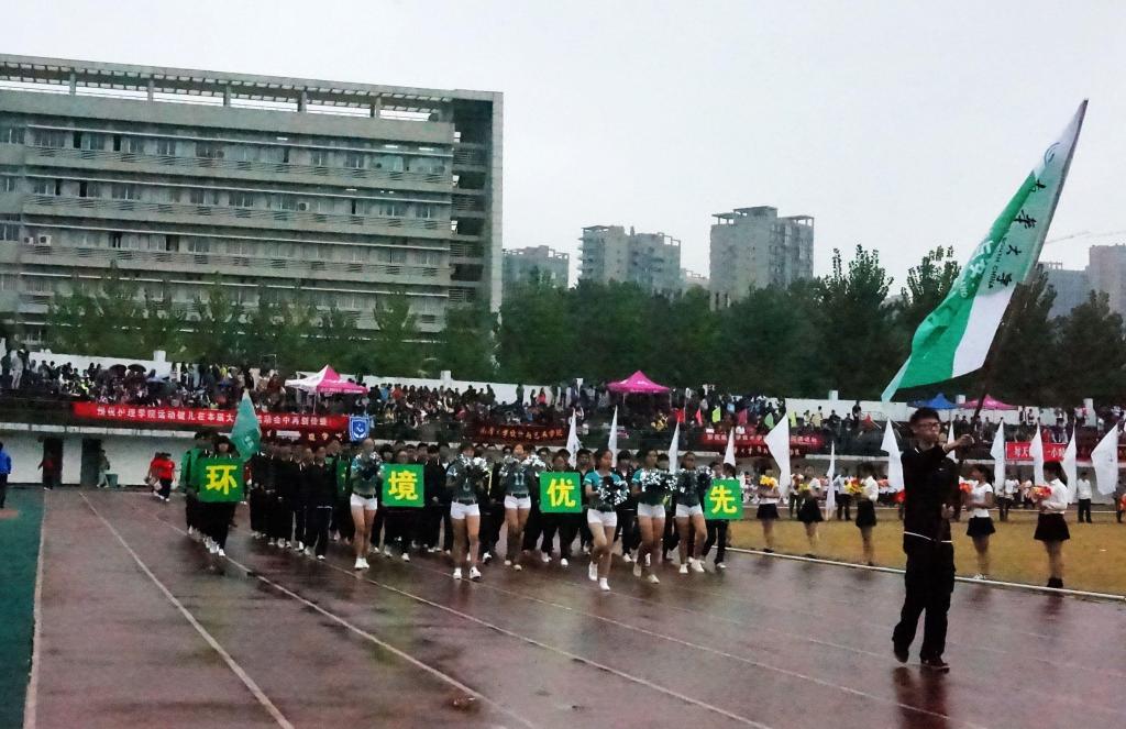 高举着“安全核能和谐发展,绿色经济环境优先”的标语、昂首阔步地走过主席台是我院啦啦操与方阵队员。他们用齐迈的步伐,响亮的口号演绎了最具环安风貌的一面。尽管天公不作美,各项比赛依然如火如荼地进行着。我院健儿彭楠楠于男子标枪比赛中荣获第三名。易淼同学获得了跳远第六名。在下午的比赛中,王树鹏同学的完美一跳获得了男子跳远第四名的佳绩。李伟峰同学也以坚持与毅力在男子5000米跑中获得第七名。我院富有青春活力的啦啦操表演更是赢得了阵阵欢呼声。他们的精彩表现,为我院的荣誉榜又新添上一笔亮丽色彩!