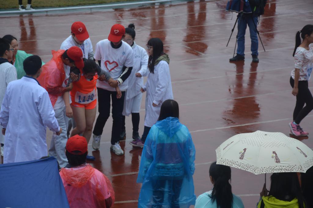 每年的大运会都下起淅淅沥沥的雨,今年也不例外。场地湿滑天气寒冷,这就特别苦了上场拼搏的运动员们。为此志愿者们特别准备了十几个塑料箱子,分成两个小组,在运动员们开始比赛之前帮他们收容好衣裤,然后在终点处等候。当他们一完成比赛,志愿者们马上把衣服送过去,给他们保温保暖。除此之外,这些志愿者们还是应对突发事件的第一冲锋队。由于各种原因所导致的突发状况,例如参赛选手因体力透支而倒在跑道上,这时,赛场上的应急小组人员便立马将他们搀扶到场边,叫来医务室的工作人员,照顾着运动员直到身体恢复过来。原本寒冷的天气,也因为他们的存在有了一丝暖意。