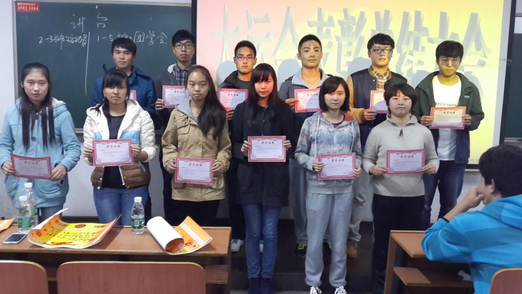 接着,学工室辅导员王祥老师宣读受表彰文件,并在同学们热烈的掌声中为荣获校优秀运动员、院优秀运动员的同学以及荣获大运会先进班级的负责人进行颁奖,以资鼓励。