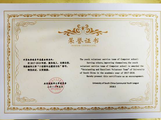 在此次表彰中,计算机学院青年志愿者服务队荣获英国上市公司365“十佳青年志愿者分队”称号。