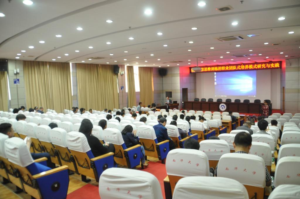 在人才培养上阳教授主张用CDIO工程教育模式来培育人才,CDIO代表构思(Conceive),设计(Design),实现(Implement)和运作(Operate),它以产品研发到产品运行的生命周期为载体,让学生以主动的,实践的,课程之间的有机联系的方式学习工程。为实现工程教育的核心目标:解决复杂工程问题的能力,清晰的岗位认知能力,创新的高阶思维能力。阳教授依次介绍了“职业能力培养导向的课程体系模型”;“基于职业团队的TBL教学模式”;“雁阵为符号的团队文化”;“嵌入计算思维训练的CBL教学方法”;“模仿-反思-创新的三阶段思维训练教学法”和自己研究成果的实施过程。