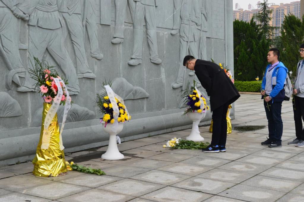 院团委书记周忠文,16级本科生辅导员、研究生党支部书记苏玲玲率领计算机学院党员、预备党员、团学干部共四十余人参与了清明扫墓活动。此次活动共四个环节:活动开始前,周忠文老师对同学们寄语:“此次组织清明扫墓活动,旨在缅怀革命先烈,传承中华美德,同学们应怀以敬畏之心,悼念革命烈士,弘扬民族精神,继承先烈遗志”。活动伊始,同学们在老师的带领下,列队整装,肃立在纪念碑前,为革命先烈默哀。接着,四位学生代表为烈士敬献花篮,其余人员排队依次在烈士碑前献上鲜花。敬献完毕,所有参与人员在纪念碑前重温入党誓词,党旗飘扬,广场上回荡着同学们铿锵有力的声音。最后,所有参与人员在纪念碑前合影留念。此次清明扫墓活动便圆满结束。