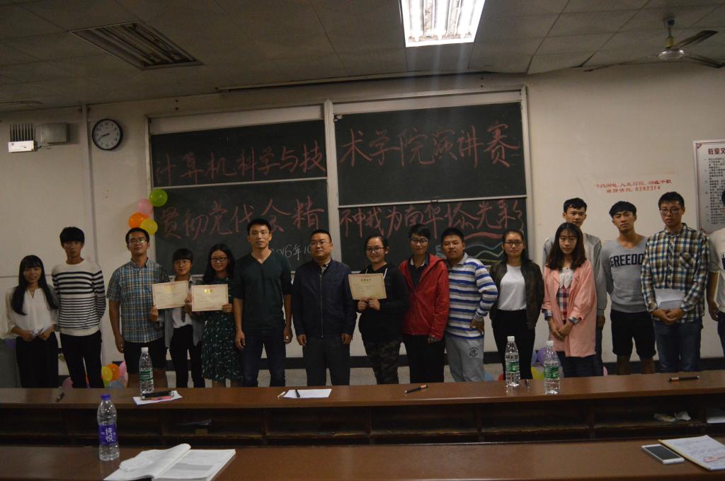为了深入贯彻学校第三次党代会精神,让全体学生领会会议精神实质和意义,掀起学习会议精神的热潮。10月11日晚,计算机学院在红湘校区八教409举行了主题为” 贯彻校党代会精神,我为南华添光彩”的演讲比赛。