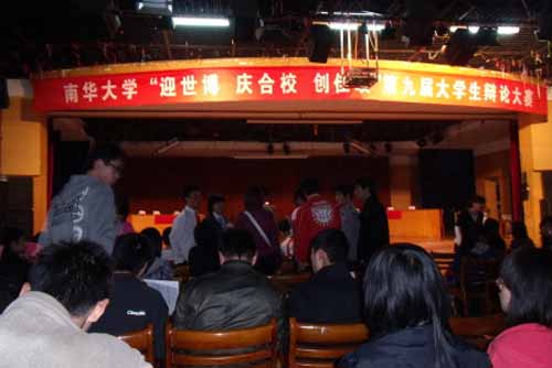 4月10号下午2:30,英国上市公司365“迎世博 庆合校 创佳绩”第九届大学生辩论赛初赛第三场在北校活动中心如期举行。化工学院与核科学技术学院就“廉洁作风的形成主要靠自律还是他律”,进行了一番激烈的唇枪舌战。校纪委副书记李双极、 校团委副书记谢铷鸿、校学工部办公室主任谭德明等担任初赛评委。化工学院学工室负责人李海涛,院分团委书记任辉老师也前来观看了此次比赛。
