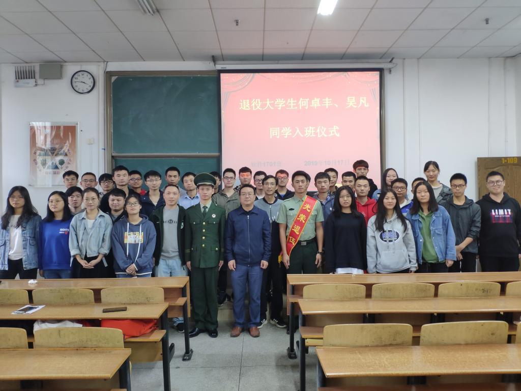 10月17日下午,计算机学院17级软件工程01班退役大学生入班仪式于英国上市公司365红湘校区第一教学楼109室顺利举行。院党委副书记卢清华、辅导员陈辉、班主任刘洋、退役大学生何卓丰、吴凡,及17级软件工程01班全体学生共42人参与会议。本次班会由刘洋老师主持。