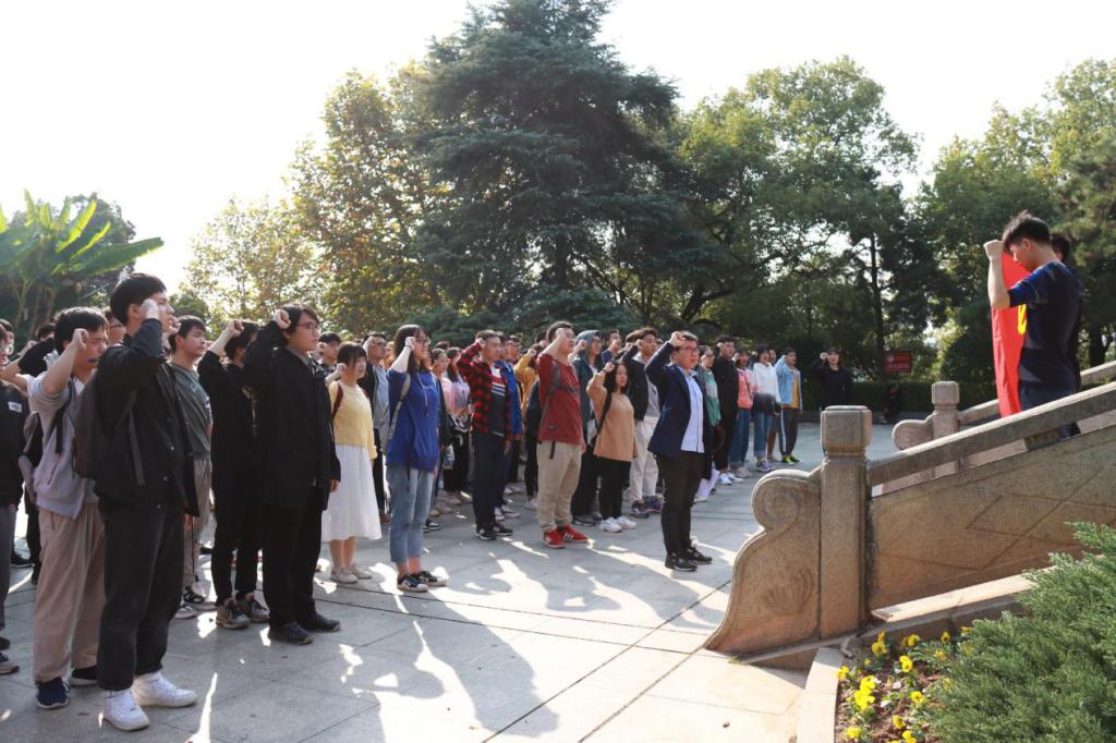 在抗战纪念碑前,学生党建工作委员会书记陈杰烜向全体党员及入党积极分子讲述了衡阳这座“英雄城市“在抗日战争时期的慷慨历史,回忆了衡阳保卫战中爱国将士和衡阳人民同仇敌忾,共赴国难的峥嵘岁月。全体党员和入党积极分子认真聆听陈书记的介绍,回顾当年衡阳保卫军可歌可泣的峥嵘岁月,追忆先烈遗迹,追思英雄情怀。全体同志们对先辈们前赴后继、艰苦奋斗的革命精神,以及不惜抛头颅、洒热血的革命壮志深感敬佩。听完讲解,全体党员和入党积极分子在陈书记的带领下,举起右手,一起向党旗庄严宣誓,重温入党誓词,铭记“为中国人民谋幸福,为中华民族谋复兴”的“初心”和“使命”。