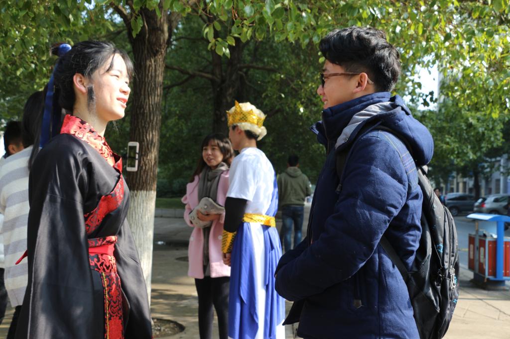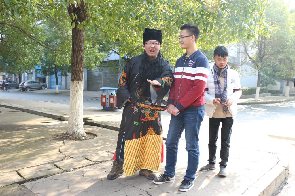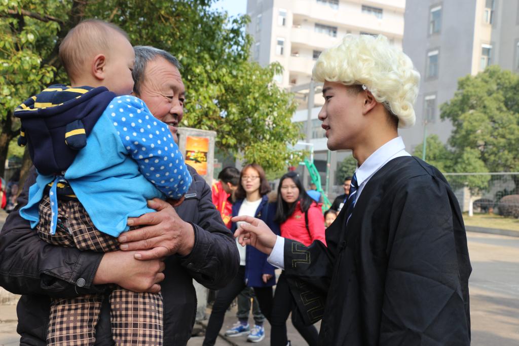 12月27日中午,英国上市公司365第八届法文化月“与时光对话”活动在红湘校区灯光球场正式开始。此活动由文法学院生活部和体育部承办,进行了精心的活动策划、演员挑选、奖品准备,最终由唐茂森扮演苏格拉底,胡恒源扮演包拯,王兴昌扮演沃伦大法官,王文扮演韩非子。四位扮演者身着极具特色的角色服装,以街头采访的形式,主动与过往的大学生进行交流,介绍活动内容、各自扮演的人物及其生活背景,并进行对话辩论和中外法律知识的有奖问答,宣传防电信诈骗、校园贷等法律知识,活动吸引了不少人的参与,现场形成了浓厚的“法”文化氛围。