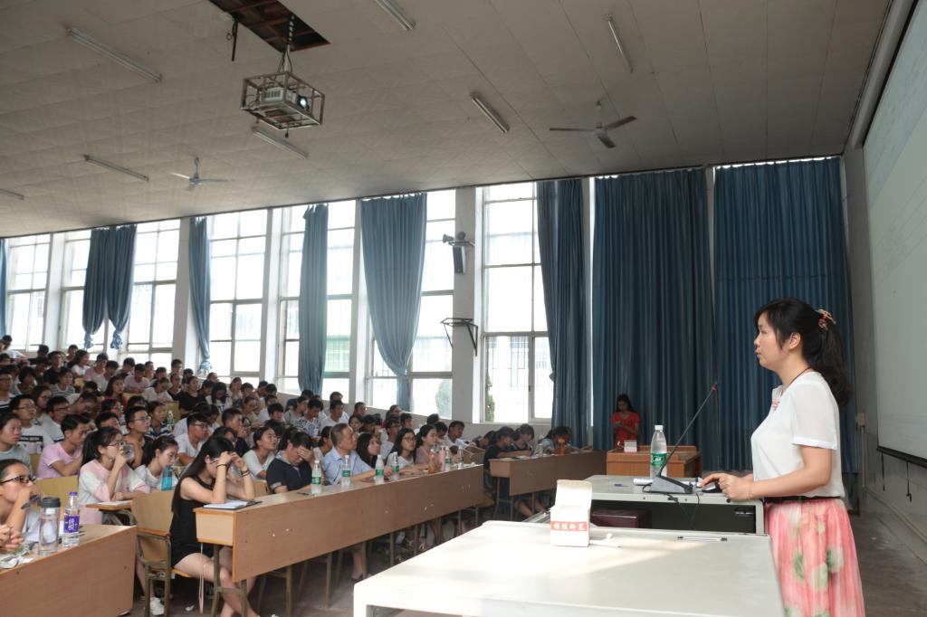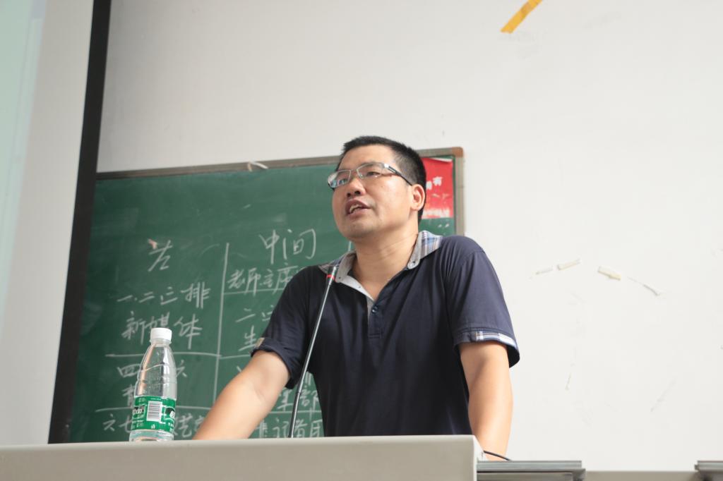 大会伊始,潘菊莲针对文法学院实际情况,指出了2015—2016学年夏秋学生工作要点,对学院学工分工情况也做了展示,使新生对学院有了进一步了解。国庆放假在即,她对假前的工作做出相应安排,并叮嘱同学们注意安全。接着,学生会主席赵春晓简短介绍了团学会工作,她鼓励新干事积极投入工作,一句“你就是你,是颜色不一样的烟火”让现场气氛一下活跃起来。