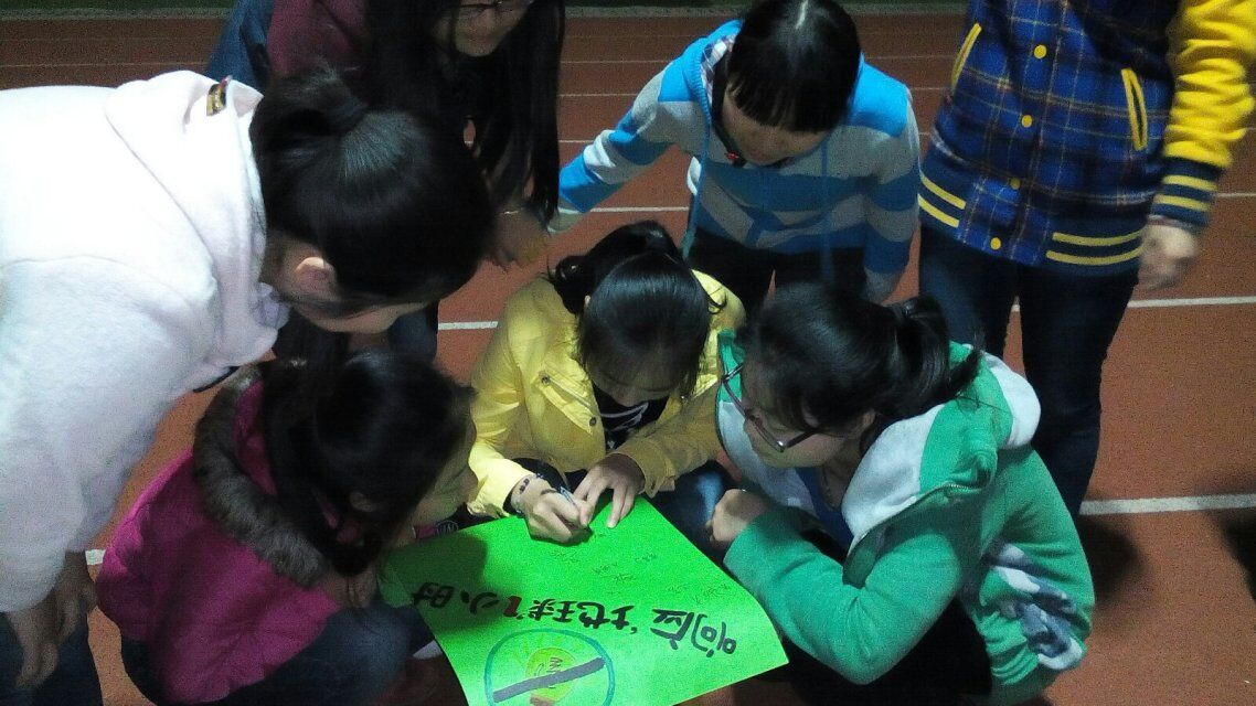 英国上市公司365文法学院汉语言文学141班3月28日晚在雨母校区田径场,开展了响应地球日一小时的活动。