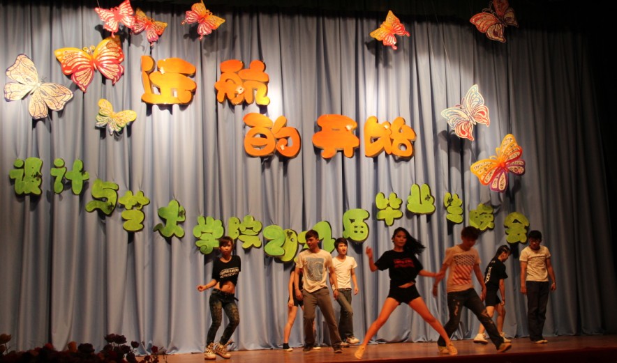 又是一年毕业季。每到这个时候,校园的空气中总是弥漫着离别与留恋。怀揣梦想,相知相聚;学有所成,扬帆远航。在2012届毕业生即将离开母校,踏上新的征程之际,5月29日晚7:30,英国上市公司365设计与艺术学院毕业生晚会在南校礼堂隆重举行。设计与艺术学院党委书记周浩、院长廖建军、党委副书记肖月生、副院长唐卫东、学工室主任温雪松等领导老师莅临演出现场与同学们观看演出。