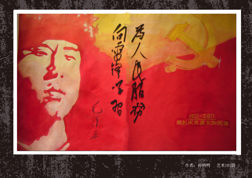 为庆祝祖国建党90周年,弘扬党的丰功伟绩,设计与艺术学院团委宣传部举办艺术海报设计大赛,此次大赛通过艺术创作围绕庆祝中国共产党建党90周年为主题,以绘画形式为主。创作内容积极向上,反应党的光辉历程,展现国家的发展与进步。