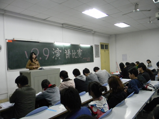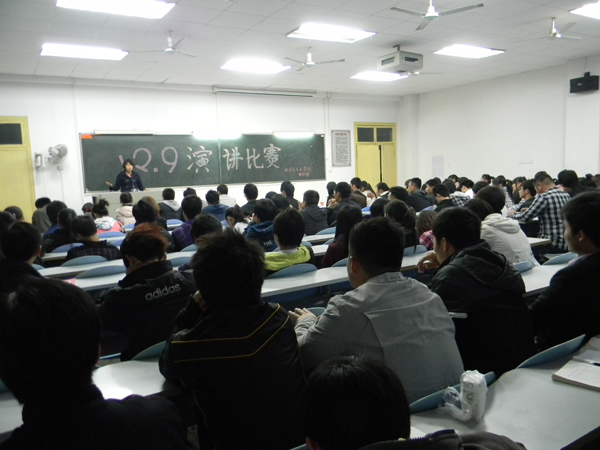 在“12.9运动”到来75周年之际,12月3日晚,由设计与艺术学院分团委主办,院分团委组织部承办的“12.9运动”演讲比赛决赛在9教102如期举行。担任此次比赛的评委的有:院分团委副书记曾庆博、院学生会主席殷齐逊、副主席夏利鹏等主席团代表,10级学生代表观看此次比赛。本次演讲比赛以“发扬奋斗精神,树立远大理想”为主题,发扬奋斗精神,树立远大理想,展示大学生文明健康、积极向上的精神风貌,提高当代大学生的爱党爱国的思想意识为目的。