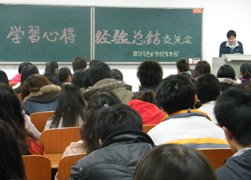 12月11日晚,设计与艺术学院学生会举办了“学习心得,经验总结”交流会。院学生会为参加会议的同学请来了通过四六级考试和专业突出的学长学姐,为同学们传授英语与专业学习的经验和心得,使在场的每一位同学都受益匪浅。