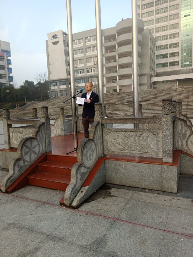 3月4日早上7点20分,我院在本部南华广场举行“国旗下的演讲”主题教育活动,仪式由学院学工室主任禹敏老师主持,我院党委副书记曾志伟、分团委书记陈小兰老师、辅导员李辉老师、所有班主任老师以及全体本科生研究生同学参加本次主题教育活动。