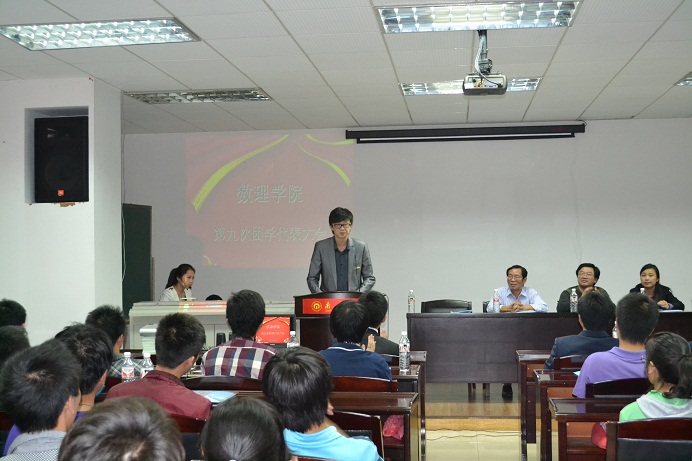 随后,数理学院院长欧阳自根宣读了我院第九届团委学生会干部任职名单。第九届团学会委员代表孙勇同学代表新一届团学会作了发言,并表示新一届团学会将继续加强学风建设,以学术为中心,提高学院品位,在原有学生会制度的基础上推陈出新,加强学生会的管理,打造有战斗力、有凝聚力的数理学院,为把我院分团委、学生会建设得更好而努力拼搏。