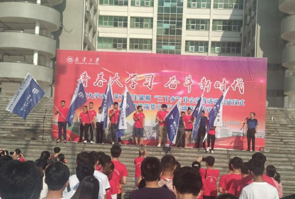 仪式开始,副校长何旭娟老师对出征实践活动的全体师生表达了问候。她说到社会实践活动是学校教育人的重要载体,社会实践可以引导大学生深入学习贯彻习近平新时代中国特色社会主义思想和十九大精神,它给青年学子提供了一个受教育、长才干、作贡献的宝贵况且机会。随后她对出征队员们提出四点希冀:一是保持吃苦的心态,在实践中磨砺自我;二是保持学习的心态,在实践中增长才干;三是保持服务的心态,在实践中奉献青春;四是保持发现的心态,在实践中担当责任。紧接着团委副书记李海洋老师具体讲解了活动方案,其中主要围绕教育关爱服务,爱心医疗服务,创新创业帮扶几个方面开展大学生暑期“三下乡”实践活动。实践团指导教师代表刘勇老师希望每位服务队员在实践活动中保持虚心、务实的心态,农村发展关乎着农业的兴旺,而农业是国家发展的必备基础,每个人都应当关注农村的状况,感恩农村,回报农村。土木工程学院15级谢正全同学代表了全体出征队员上台发言,他以自己的学有所成,理应心系农村,反哺农村。随后他代表全体队员作出庄严承诺:真心实意为民众干实事、好事。在“三下乡”期间,脚踏实地,做实干家,坚韧不拔,以汗水和智慧夯实本领,用真才实学作出贡献,做一名有理想、有担当优秀南华学子。最后校团委办公室副主任刘阳老师带领了全体服务队员宣誓,副校长何旭娟老师同活动负责人为各个学院的服务团体授旗,并祝愿了全体队员平安归来,至此启动仪式正式结束,“三下乡”的红色之旅正式迈开步伐。