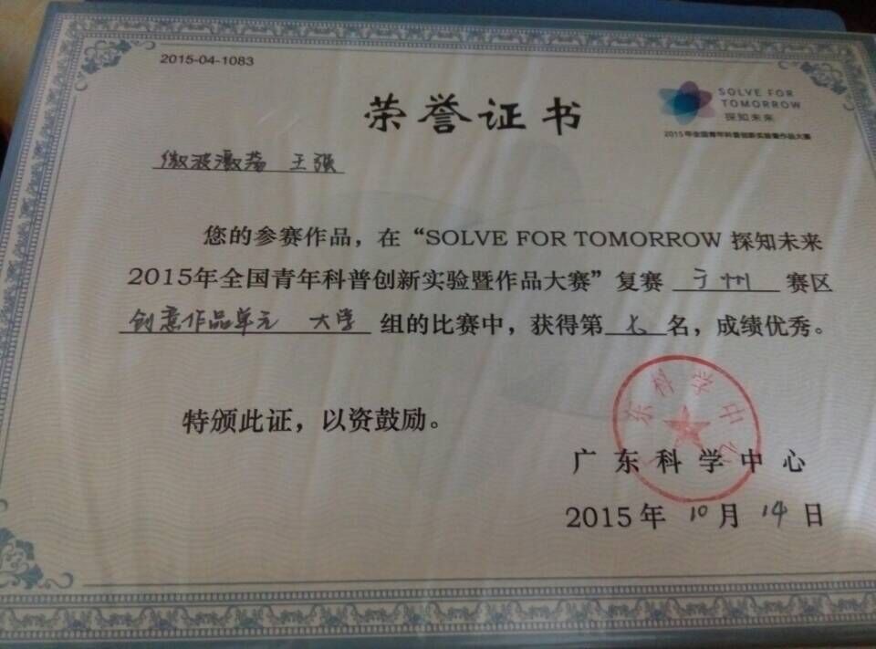 此次由中国科协举办的大型科普创新实验是一次非常重要的,影响意义非常大的全国性竞赛。城建学子能取得如此佳绩,不但证明了三位同学的实力非凡,也展现了城建学院严谨,高效的教学和认真扎实的学风。此次大赛于九月十八日截止报名,在此前王强,周彬侃,谭文标同学便已积极备战,在指导老师的细心指导下做了踏实的准备,并顺利通过初赛。十月十四日,远赴广州科学中心进行复赛,在各大高校人才其聚,竞争异常激烈的情况下,三位同学顶住压力,凭借他们独特而又创新的微波激荡实验作品取得第七名的优秀成绩。展示了我们城建人的自信与能力,愿广大同学能以他们为榜样再接再厉,为人生添色增彩!