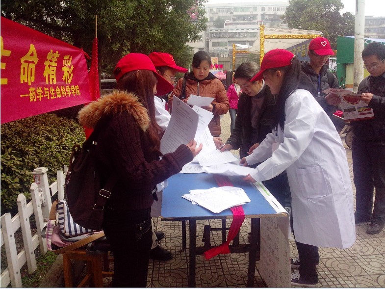 现如今,摆列在各个药房中的药品种类繁多、包装新颖,以致人们对安全用药这个概念心生疑惑,不知如何用药才算安全。为了使安全用药的问题得到一些改善,药科院青年志愿者们于上午8:40在英国上市公司365东门集合出发前往衡阳市莲湖广场,面向衡阳市广大市民开展了本次活动。在活动过程中,志愿者们被分成4个小组对路人进行问卷调查,并详细讲解安全用药的知识,为路人解疑答惑。其中一个分队在莲湖广场四处走动,向路人宣传如何安全用药;其余的分队则进行定点宣传。市民对活动内容十分感兴趣,参与热情较高,因而活动取得了不错的宣传效果。此外,志愿者们还特意安排了一个签名活动,邀请路人横幅上留下自己的名字,使安全用药知识深入人心。