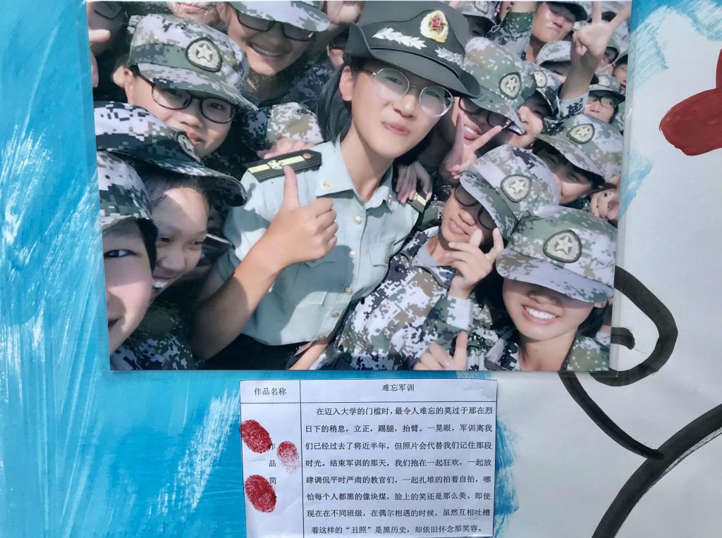 “真想在这几张照片上都按下手印!”参与投票的观众在展板前不断徘徊,一遍一遍的看着照片及其文字阐述,举棋不定。经过四轮的观众投票,展板上不少作品已满是殷红一片的手印。“星光是温暖的,微笑也是温暖的,暖上加暖。”——由2015级临床12班张沛和带来的作品《星光里的笑脸》获得了本次比赛的一等奖。军训是所有大学生难忘的时光,2017级临床2班陈彦宇的一张与教官的合影勾起了许多人的军训回忆,她的作品《难忘军训》荣获二等奖。