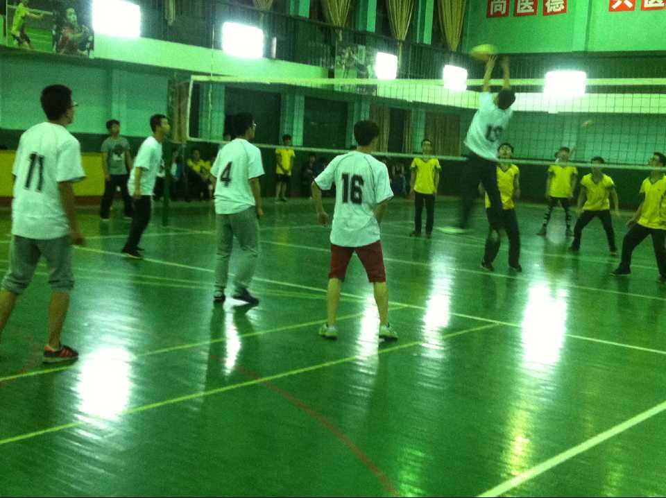 医学院队员们个个摩拳擦掌,一上场就势如破竹,一个个完美的发球、熟练的垫球加上队员间默契的配合,以压倒式的比分迅速赢得前两局的胜利。环安学院毫不示弱,及时调整战术,在第三、四局与医学院队展开激烈角逐,扳回两局。决定胜负的第五局将全场氛围推向了高潮,场上双方队员奋力拼搏,赛场下啦啦队加油声此起彼伏,比分你追我赶牵动着在场所有观众的心。最终医学院代表队以微弱的优势险胜。