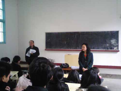 两位老师首先去各个寝室问候了同学们的生活、学习情况,对同学们提出的疑问予以详细的回答,随后,两位老师与医院学生工作处冯素珍老师会面,针对该见习队的情况进行了交流。下午,佘雅老师发表了以“创建优良学风,提升道德素质”为主题的演说,她指出“加强优良学风建设,符合大学生成长成才的根本需要,符合建设高水平大学的根本需要,符合构建和谐校园的根本需要”,我们要通过班风学风建设的开展,使广大同学有明确的学习目的,刻苦的学习精神,严格的学习纪律,使学习风气明显好转,综合素质全面提高。
