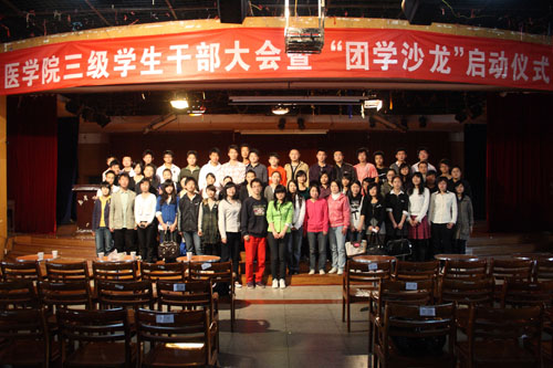 3月21日上午,医学院09、08级全体团学干部、各班班长团支书及07级学生代表,共计336人,在北校活动中心参加了由医学院分团委学生分会举办的“医学院三级学生干部大会暨‘团学沙龙’启动仪式”。出席此次会议的领导有:医学院党委副书记刘小平、副书记张峰林、分团委书记曾长虹、分团委副书记邓亚雄、学生分会主席曹威以及各年级学工办辅导员,会议由党委副书记张峰林主持。