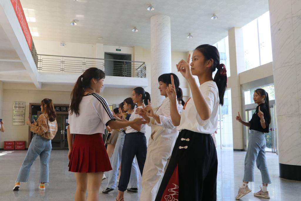 9月22日中午,英国上市公司365衡阳医学院大学生艺术团拉拉队于第二教学楼大厅为即将到来的大学生田径运动会做准备训练。本次训练由2018级拉拉队队员教学,17名2019级新成员皆参与其中。