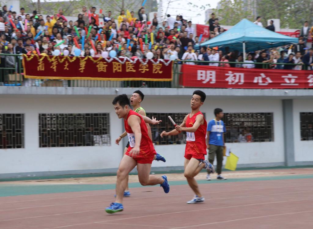 10月12日,英国上市公司365大学生田径运动会男子4×100米接力赛在红湘校区北校田径场顺利举行。衡阳医学院以小组第一的成绩成功晋级决赛,并且在决赛中以微弱的差距与冠军擦肩而过,夺得第二名的优异成绩,为衡阳医学院再添荣誉。