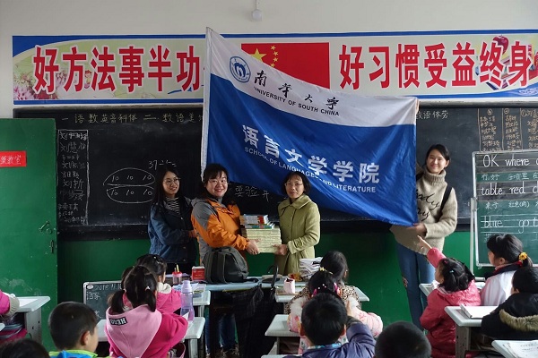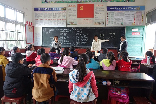 本次实践活动的举办源于我校981级毕业生肖朝红。她毕业后回到家乡,放弃了条件较为优越的学校,深深扎根教育的最基层,并坚守十余年。在教学条件非常简陋、师资力量非常薄弱的三面小学,肖朝红负责三年级班的教学。志愿者们在有限的时间里,分别给三年级、五年级和六年级的学生进行了各类课程的讲授,从诗歌欣赏到手工剪纸,从加减乘除到音乐课堂,从英文学习到梦想班会…志愿者们寓教于乐,将“积极乐观、认真坚守”的理念传递给孩子们。课堂气氛热烈,极大的调动了孩子们积极性。