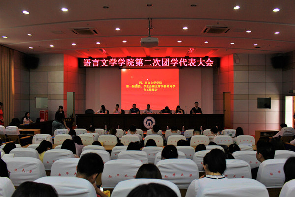 6月9日,语言文学学院第二次团学代表大会在红湘校区图书馆学术报告厅召开,校团委副书记李海洋、学院副院长马汉钦、院党委副书记陈彬、校学生会主席李沛龙及学工办全体辅导员出席本次大会。大会由学院团委书记周玲主持,参会人员为语言文学学院第一届团委、学生会全体团干、第二届团委、学生会候选人和学院15―17级优秀学生代表。