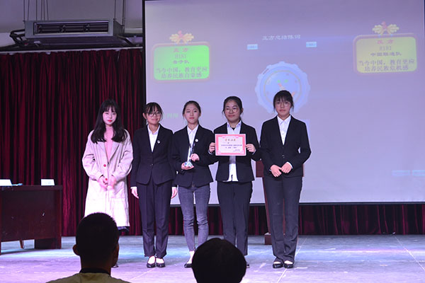 经过评委的一番商议,日语181班第二支辩论队伍以自身雄辩实力获得冠军,汉语182班辩论队获得亚军,英语183班辩论队获得季军。