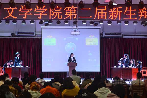 11月11日下午,语言文学学院第二届新生辩论赛决赛于雨母校区新食堂四楼正式开始。本次进入决赛的辩论队伍分别来自汉语182班、英语183班以及日语181班,其中日语181班有两支辩论队伍。
