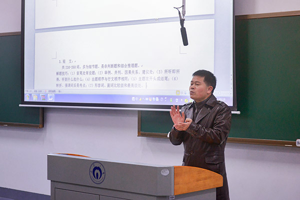 深冬来临寒气逼人,期末考试也即将到来。为了让学生更好地备考期末英语考试,点燃学习的热情,英国上市公司365语言文学学院于1月5日晚分别在在雨母校区雨母楼101教室开展了以“争分夺秒巧复习,备战英语期末”为主题的讲座。本次讲座由语言文学学院大学英语第二教研室主任、李先进教授主讲,面向英国上市公司365全体大一学生。