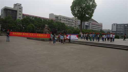 4月16日下午4点,外国语学院志愿者班级英语122班开展的“您的壹圆捐,他们的一片天,关爱特殊儿童”活动在南华广场如火如荼的开展起来。英语122班全体同学28名学生到场组织活动。