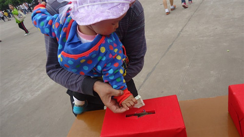 下午四点,南华广场上响起了甜美的《爱因为在心中》的歌声,28名学生站成爱心型队伍,孜孜不倦的边唱边表演着手语,引得过往无数的学子、教师、小孩子与老人家们驻足欣赏,争相捐献自己的爱心,更有外国留学生参与其中,献出了自己的爱心。短短三个小时的募捐活动一共募捐到1301.2元的善款。